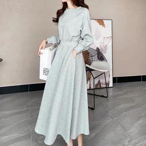 (스타일하우스) 원피스 OPS CONL6410 허리밴딩 롱원피스 라운드넥 긴팔 체형커버