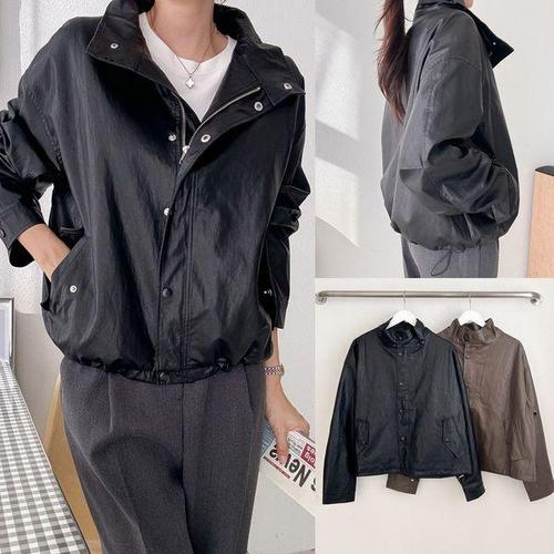 봄 가을 여성 레더 재킷 캐주얼 트렌치 코트 루즈핏 라이더 자켓 기질 빈티지 차이나넥 PU 가죽 자켓 ZZL