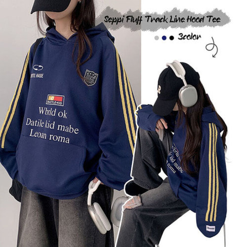 더핑크 / 세피 오버핏 기모 프린팅 트랙 라인 후드티