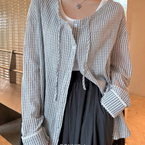 [퀸이즈][퀸이즈] [77까지]유케 레이스 라인 디테일 셔츠 블라우스