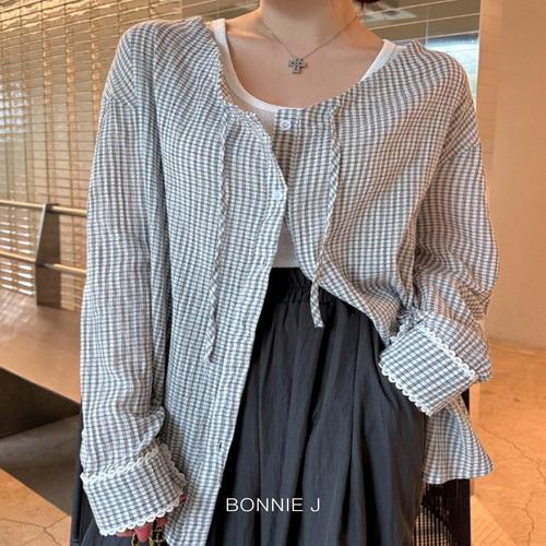 보니제이 / 레이스 펀칭 디테일 빈티지 무드 블라우스 넥라인 스