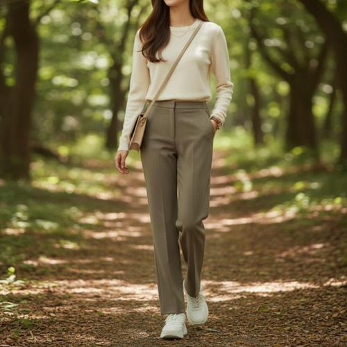 [다잇템]여성 뒷밴드 H라인 민무늬 정장바지 오피스룩