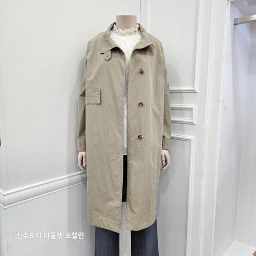 [옷자락]여성 면혼방 소매 라인 카라넥 미디 트렌치 코트