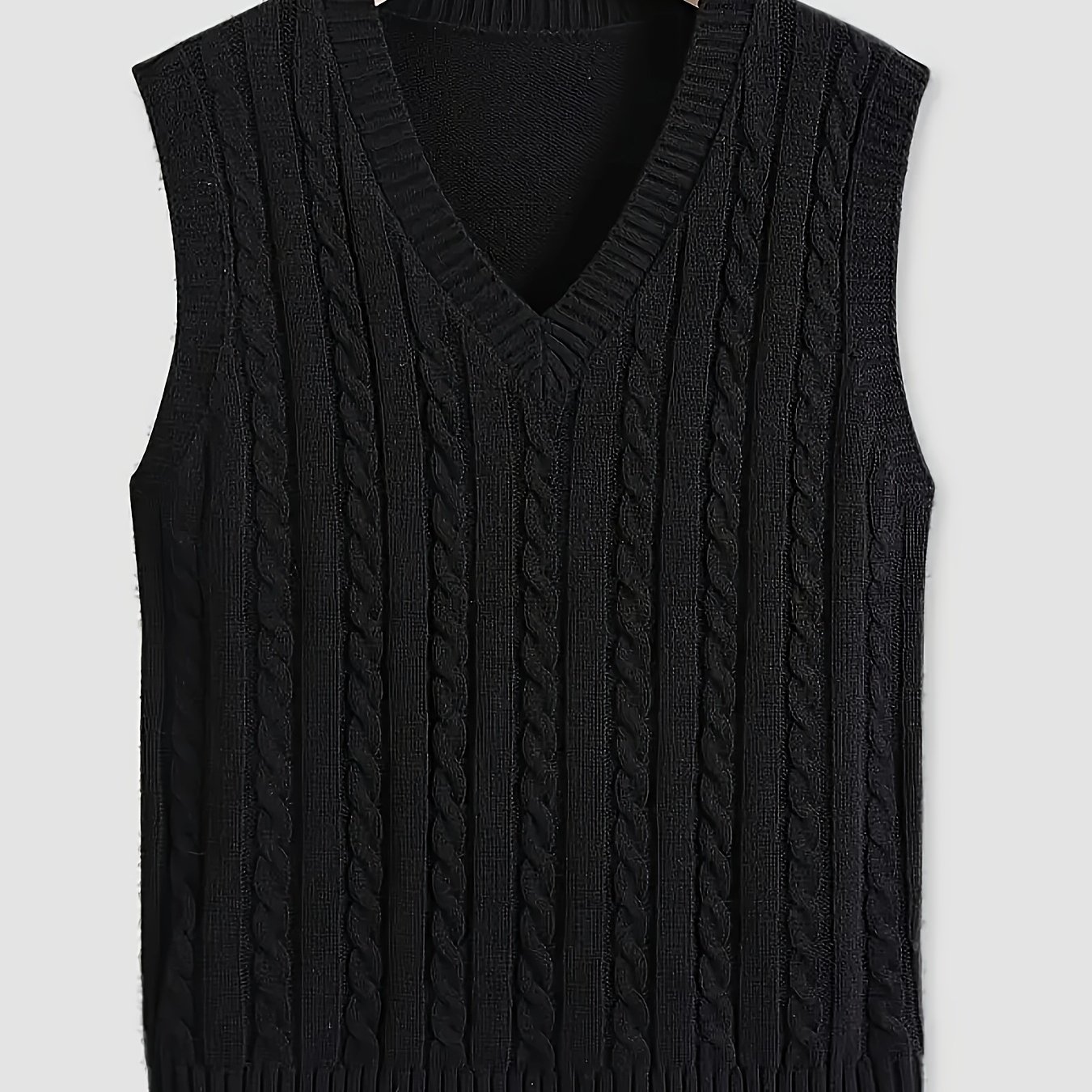 TEMU 남성용 솔리드 컬러 니트 조끼, 로프 캐주얼 풀오버 스웨터
