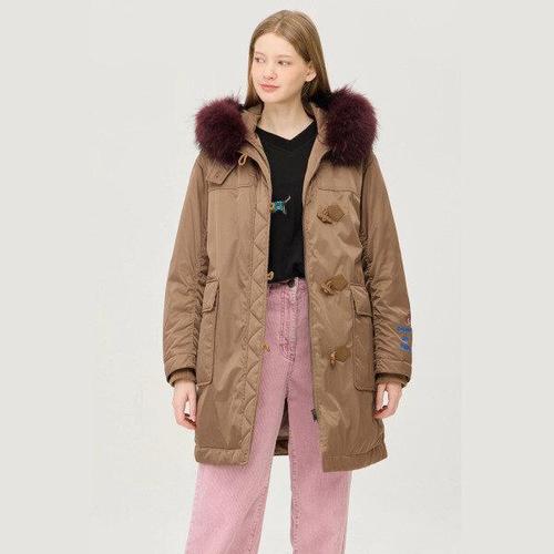[맥케이슨]여성 라쿤퍼 중기장 구스다운 패딩 점퍼 브라운 MDW4JD604BRO