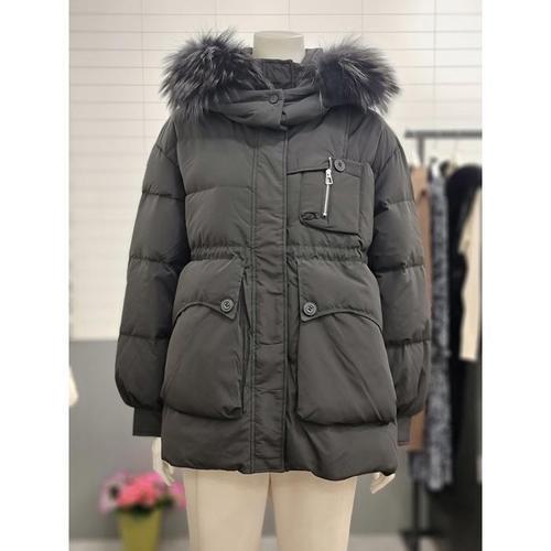 [루이까스텔]여성 구스다운 라쿤트리밍 롱후드점퍼3LRJP121N_OD
