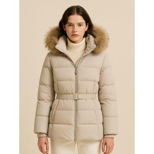 [맥케이슨]여성 라쿤퍼 중기장 구스다운 패딩점퍼 베이지 MDW4JD604BEG