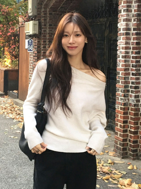 [라메레이] 베이비 알파카 원오프숄더 니트탑