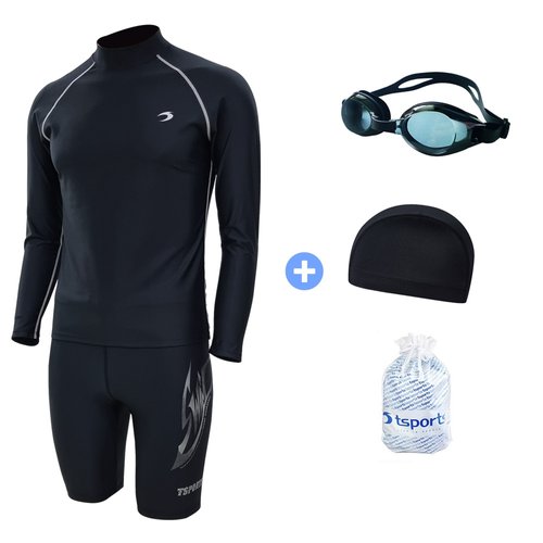 TS스포츠 남성수영복 긴팔 래쉬가드 5부 반바지 성인 빅사이즈 강습용 실속세트 23042+24052