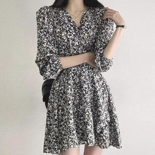 vsyoy 프랑스 스타일의 우아한 나이 감소 꽃 원피스 여성 가을 및 겨울 연예인 스타일의 힙합 랩 원피스 고급 우아한 짧은 치마