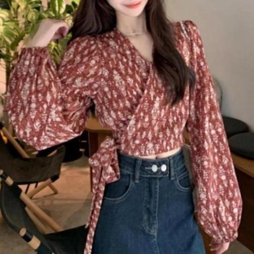 플로럴 리본랩 퍼프 블라우스 WFLS290
