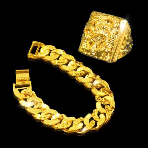 [지와이] 2종세트 팔찌 반지 남자 18k 도금 노블레스 승천 변색없는 싱크로율 24k 볼드 할로우