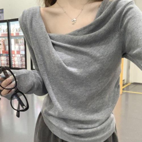 드레이프넥 러블리 여성 긴팔 블라우스 니트티 니트 WFLX6B0