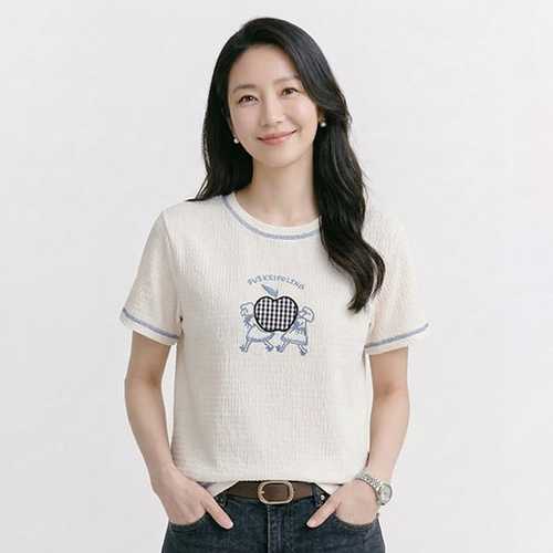 NT3280 여성 러블리 자수 포인트 라운드넥 반팔 티셔츠