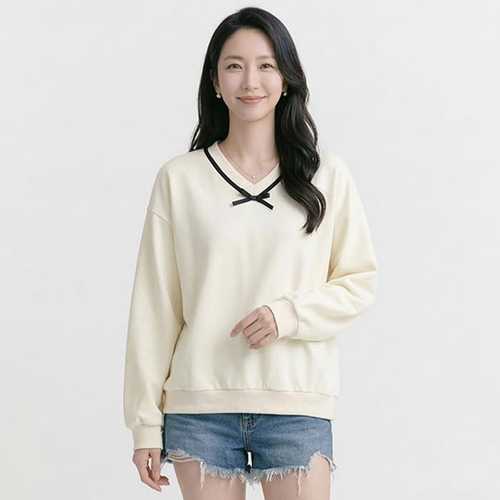 NT3271 러블리 리본 포인트 브이넥 긴팔 맨투맨