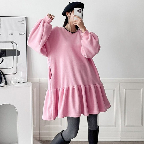 [옷자락] 여자 러블리 둥근카라넥 기모 긴팔 롱 원피스