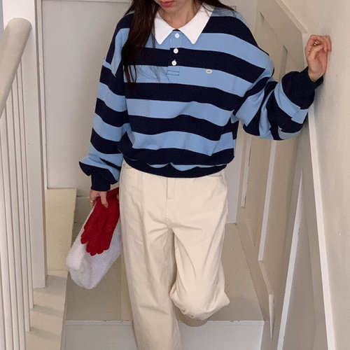 플러리싱 / 양기모 럭비 카라 단가라 맨투맨 플러리싱