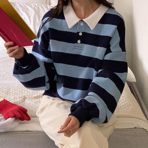 여자 겨울럭비티셔츠 박스 줄무늬 맨투맨