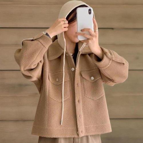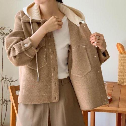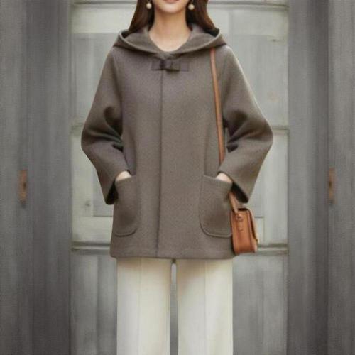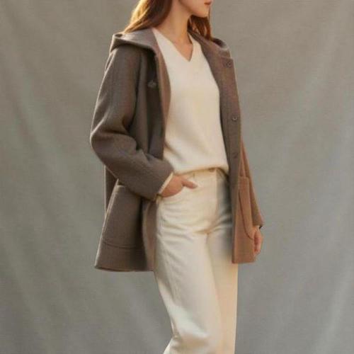 [신상오픈런]여성 심플 후드 버튼 A라인 울 모직 자켓