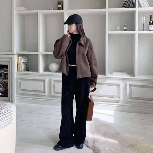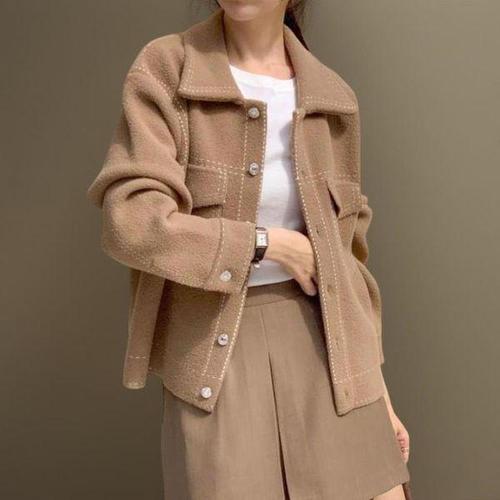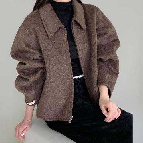 [신상오픈런]여성용 클래식 울혼합 카라 집업 재킷