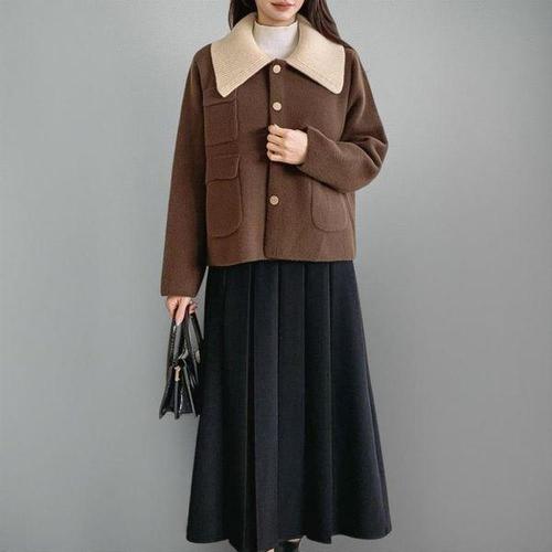[신상오픈런]여성 클래식 니트 큰 카라 포켓 울 자켓