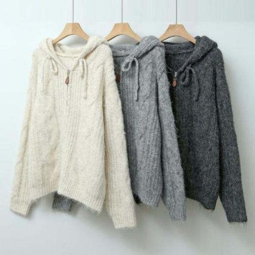 [신상오픈런]여성용 세미크롭 후드 니트 자켓 캐주얼 모직 스티치 디자인