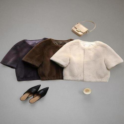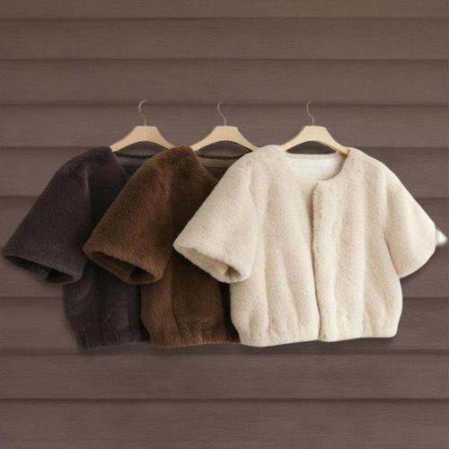 [신상오픈런]여성용 귀여운 포근한 무지 퍼 반팔 노카라 베스트 자켓