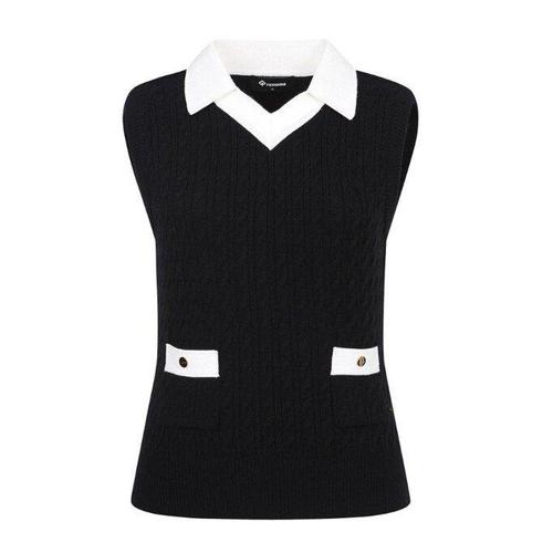 여성 펀칭 짜임 배색 니트 베스트 RWSVK5201-199