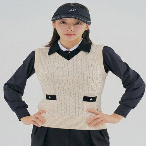 레노마 골프 여성 간절기 사선 로고 배색 니트 베스트 RWSVO_5208