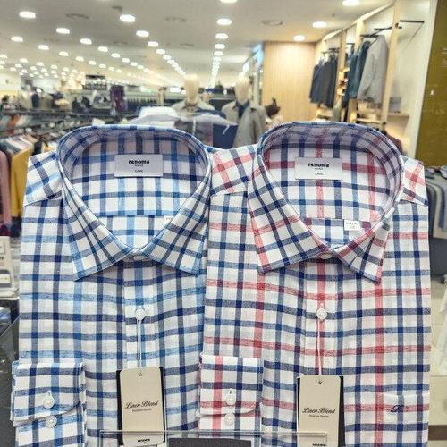 [레노마(셔츠)][레노마]린넨혼방의 서커체크 긴소매 일반핏남방RPSSG1-031PK