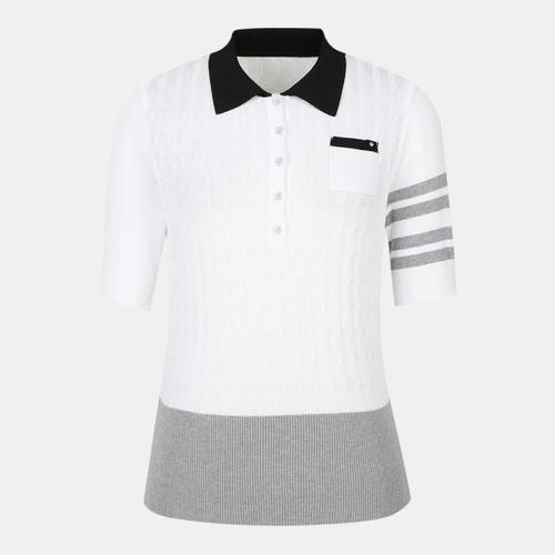 [레노마골프][본사공식] 여성 세로 꽈배기 조직 카라 반팔 니트 RWSPM6203-101