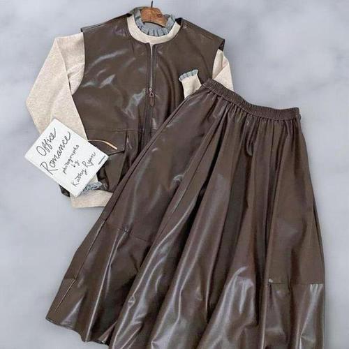 여성 플리츠 가죽치마 미디 스커트 가을 겨울