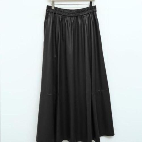 [다잇템_패션]여성 롱 가죽 고무줄 후레아 민무늬 스커트