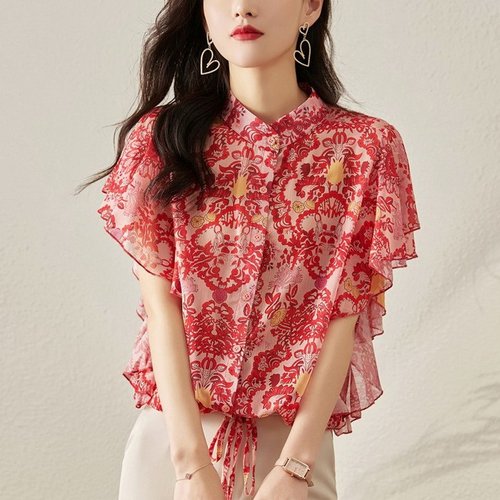 제로투올샵2 / 여성 여름 쉬폰 반팔 블라우스 넉넉핏 레드 M