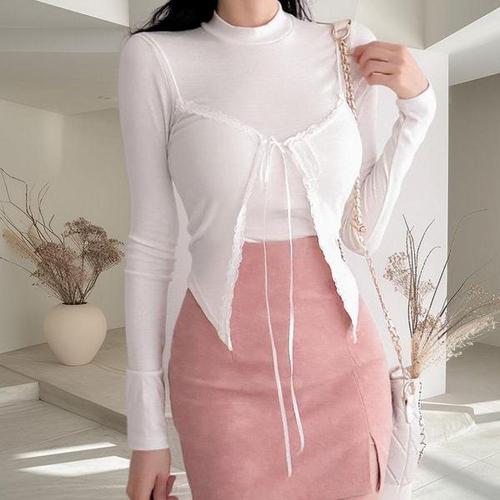 에스라이프 2단 캉캉 프릴레이스 레이어드 이너 긴팔 티셔츠