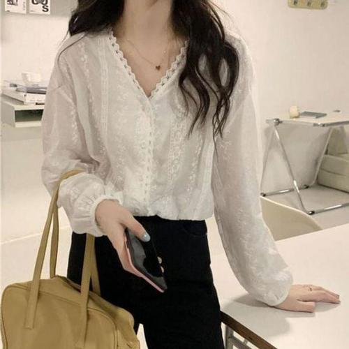 [모노무드]MNO 브이칼라 레이스소재베스트 셔츠