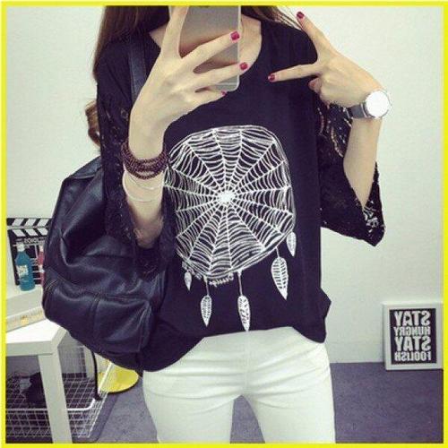 [모노무드]LMO 베스트 데일리룩 여성티셔츠 원형넥 프릴레이스 프린트티탑