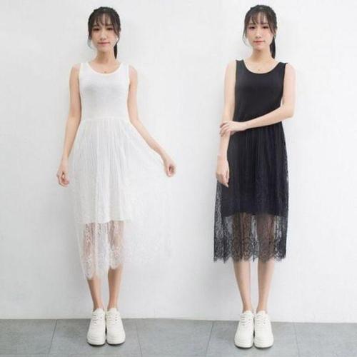 [에이치플러스몰]레이스소재 시어 베스트 플레어핏이너 이너원피스