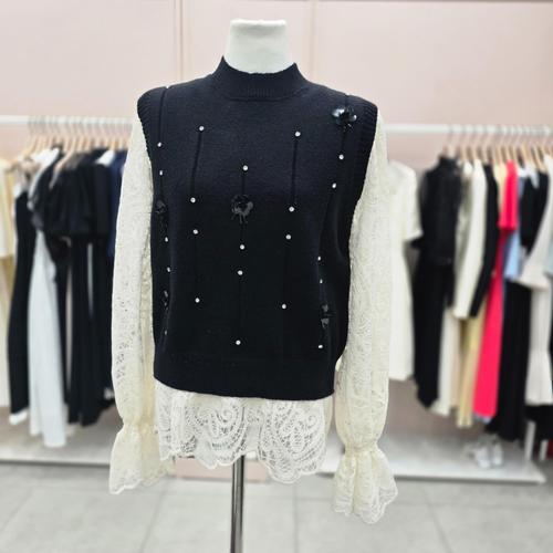 [샤틴]니트베스트 셋업 레이스 블라우스S253C202A