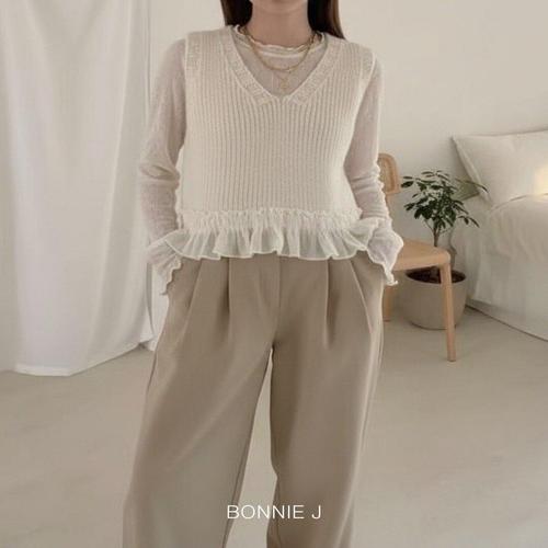 [보니제이]러블리 브이넥 니트 뷔스티에조끼 니트나시 레이스 레