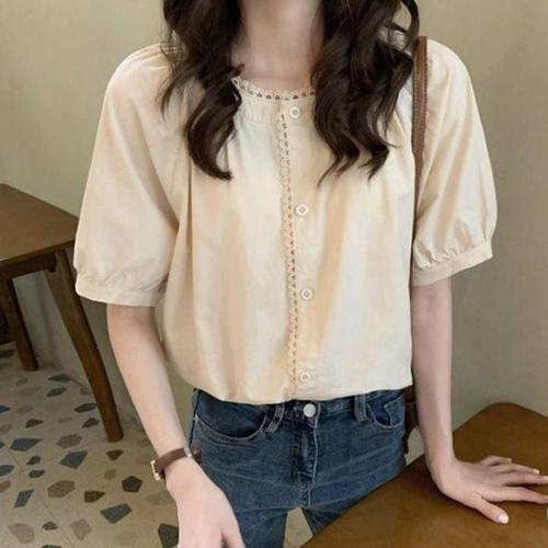 [다잇템][다잇템] 여성 레이스 벌룬소매 면원단 귀여운 반소매 블라우스_22451951_588872