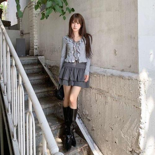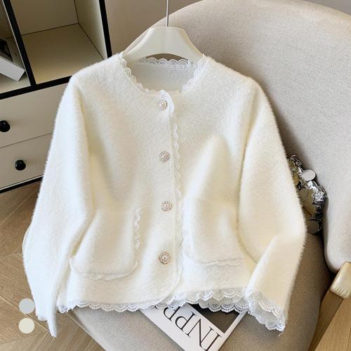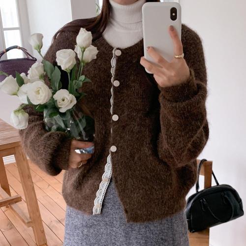 [신상오픈런]여성 부클 니트 가디건 레이스 단추 가을 라운드 울 스웨터