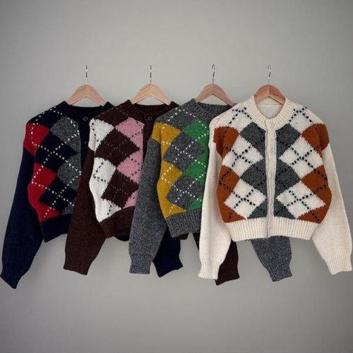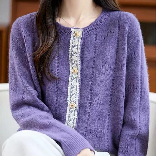 [신상오픈런]여성 레이스 단추 부클 니트 가을 라운드 울 카디건