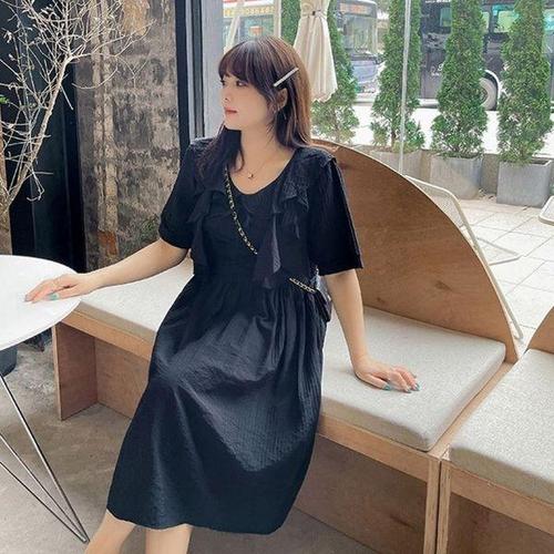 [샵앤]프릴주름 여성 라운드 데일리 이지웨어 H라인 반팔 롱원피스LL-WDR-11873-소라