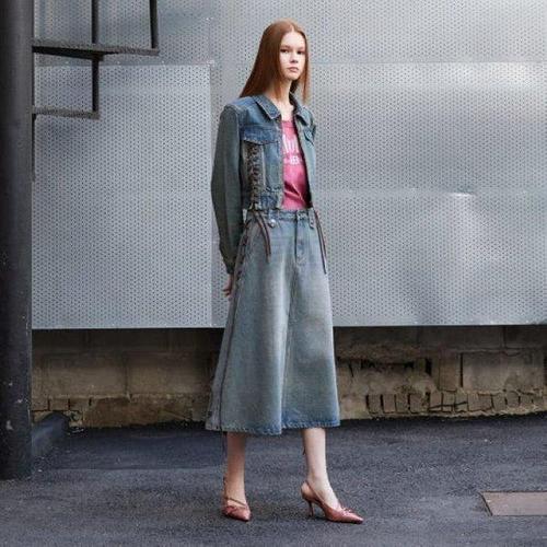 갤러리아_[Blue Label]레이스업 롱 데님 스커트[ER3ODS01]