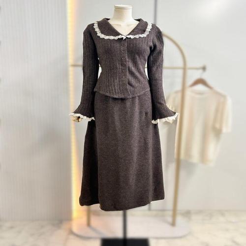 [스타일리쉬바이피클]레이스 카라 골지 가디건 스커트 코디 세트 LSD9ST51DA1