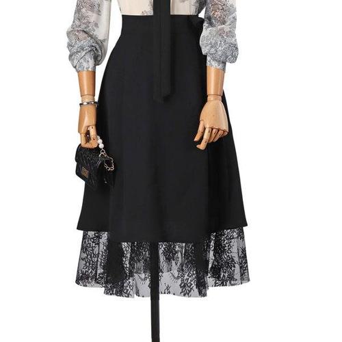 트렌딕스 여성 패치워크 레이스 스커트 2025 신상 하이웨이스트 슬림 홀로우 아웃 맥시 스커트 가을 브라운 패션 파티 클럽 보헤미안 스커트