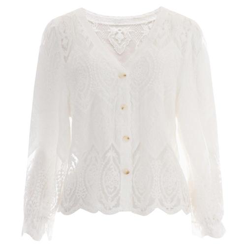 나인 여성 시스루 레이스 퍼프소매 블라우스 가디건 JL-WCD-1443-화이트-Z