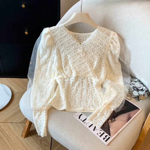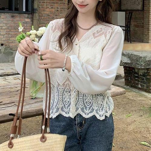 [셀러허브_여성트랜드패션]ONM 여성 데일리 시스루 긴팔 레이스 셔츠 블라우스