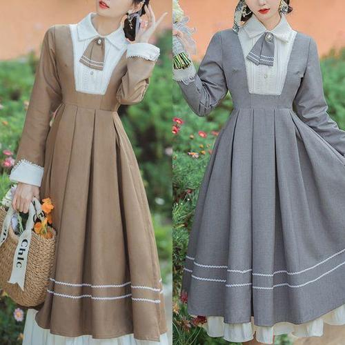 [교복몰]레트로 각카라 더블라인 프레피룩 레이스 롱원피스